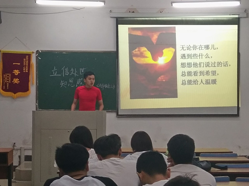 根据我校学生资助工作计划安排,为大力弘扬社会主义核心价值观,深化感恩、诚信、责任教育,培养大学生的诚信、感恩意识,提高学生资助工作育人水平,汽车工程学院5月25日晚15级、16级班级开展“立信处世,知恩感恩”主题班会。