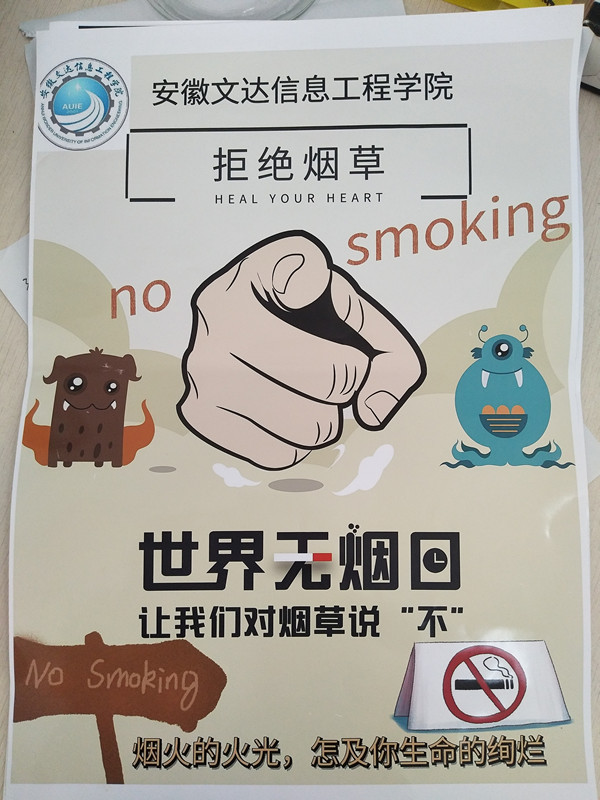 为了营造文明和谐的校园环境,进一步践行校风建设,规范大学生日常行为,倡导无烟环境,共建美丽校园,为此开展禁烟主题教育系列活动之“远离烟草,健康生活”海报设计大赛。