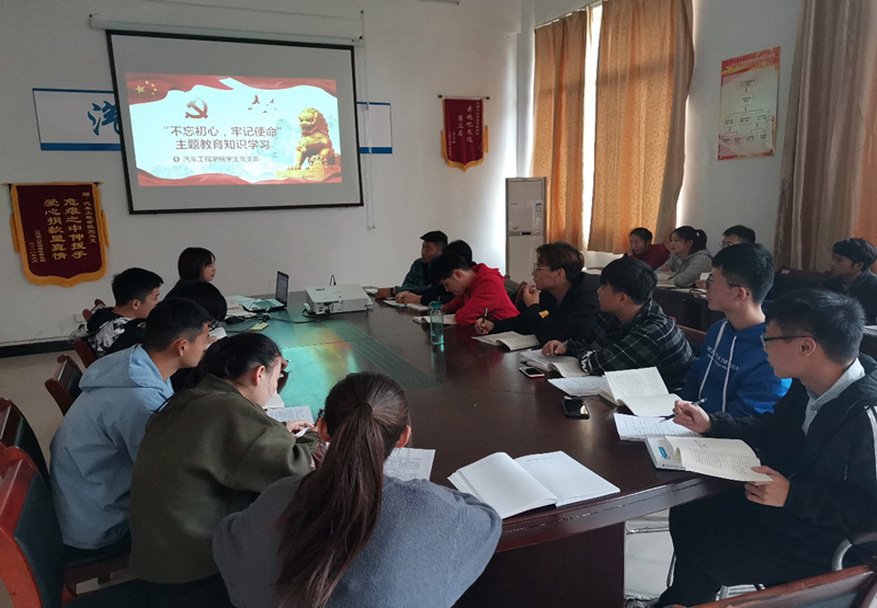 汽车工程学院学生党支部在学院会议室开展了“不忘初心,牢记使命”主题教育知识学习