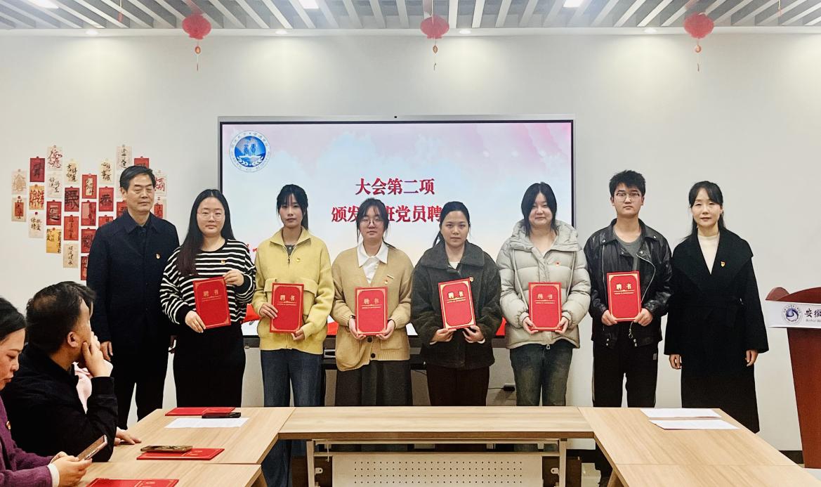 随后,教工支部副书记张春玲与学生支部书记周影分别介绍了12名师生驻班党员的基本情况。教师党员中,既有深耕教学科研的省级教坛新秀,也有指导学生竞赛屡获佳绩的骨干教师;学生党员则多为获得国家级奖项、社会实践经历丰富的优秀学子,充分彰显了驻班队伍的示范性与引领力。随后,与会领导为12名驻班师生党员颁发聘书。