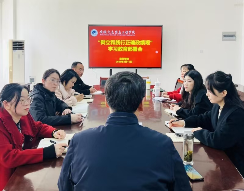 会议深入学习贯彻习近平总书记关于树立和践行正确政绩观的重要论述,传达学习中央党的建设工作领导小组会议、安徽省委及学校党委有关会议精神,研究部署学院学习教育工作方案。