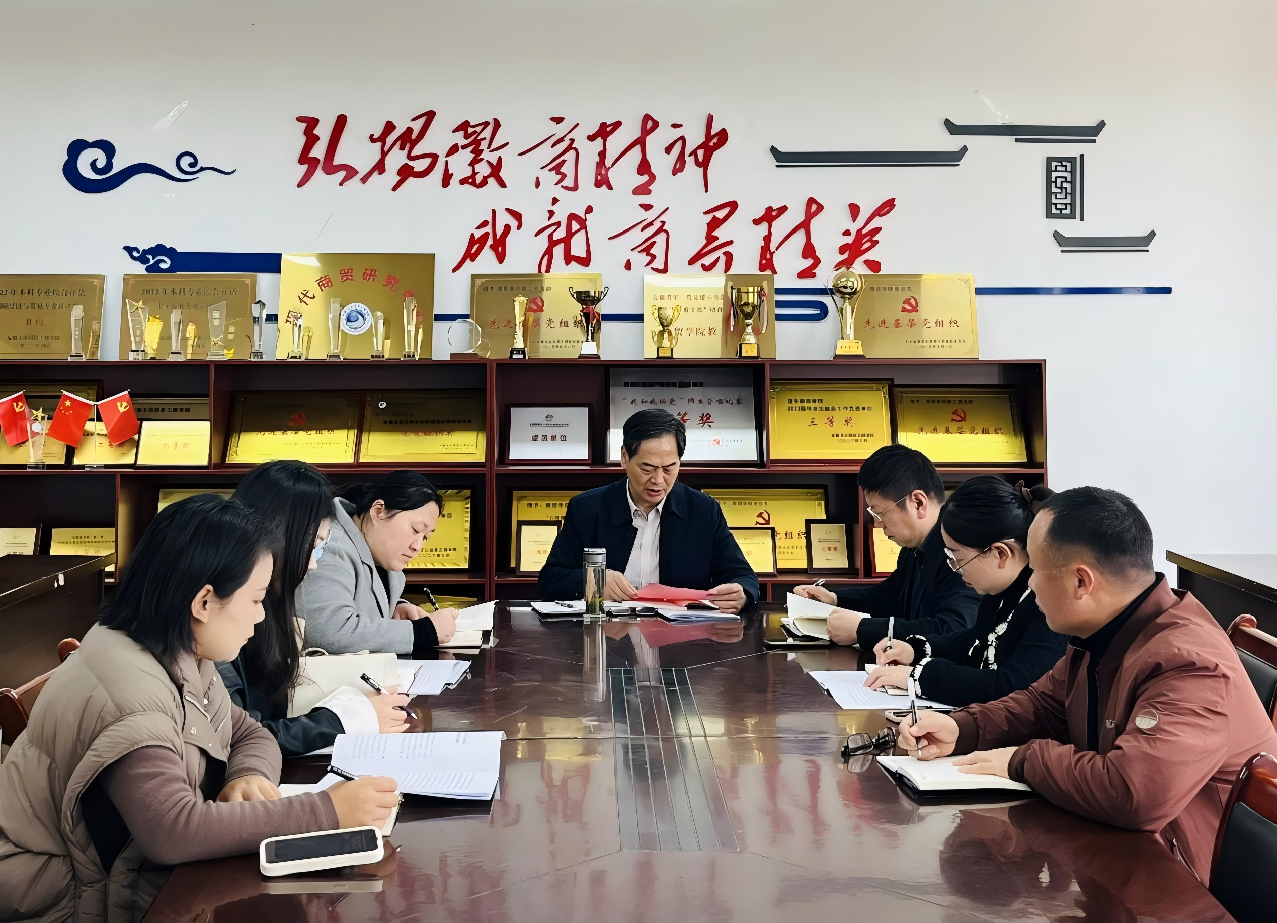 3月25日上午10时,商贸学院党总支树立和践行正确政绩观学习教育专题读书班在敬梓楼215会议室正式开班。党总支书记、院长栾敬东主持读书班开班式并讲话,党总支委员会全体成员、党政领导班子成员及各党支部书记参加学习。