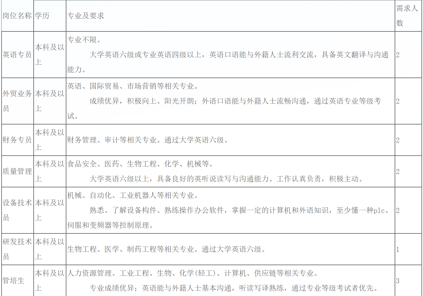 二、招聘岗位:
