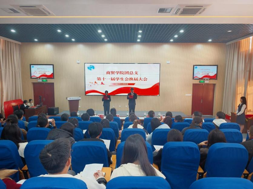 为进一步加强学生组织建设,传承服务精神,凝聚青春力量,推动商贸学院学生工作高质量发展,11月21日,商贸学院团总支学生会换届大会在文鼎楼多功能厅隆重举行。商贸学院党总支副书记、副院长李爱萍,团总支书记桂梦玲及辅导员陈薇、李东佳、叶朝婷、周影出席会议,第十届学生会全体成员与新一届学生会成员共同参会,见证责任交接与青春接力的重要时刻。
