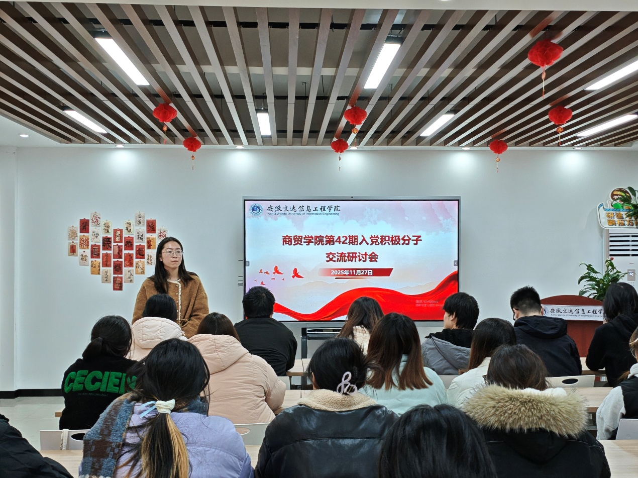 为切实加强入党积极分子队伍建设,提升入党积极分子的思想觉悟与责任意识,推动学院基层党建工作走深走实,商贸学院党总支于11月27日在15、16栋“一站式”学生社区会议室召开第42期入党积极分子交流研讨会。会议由学生第一党支部书记周影主持,第42期全体入党积极分子参加。