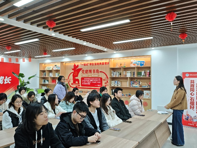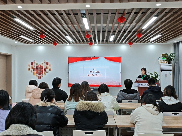 会议首先开展了优秀青年成长经验分享环节。学生第一支部2024级旅游管理与服务教育(对口)专业的王玉婷、学生第二支部2024级商务英语专业的罗悦文作为优秀学生代表,围绕学习规划、专业提升、志愿服务以及自我管理等方面分享了自己的经验与心得。她们的成长故事不仅展现了新时代青年奋发向上的精神风貌,也为在座积极分子提供了可借鉴、可实践的努力方向。