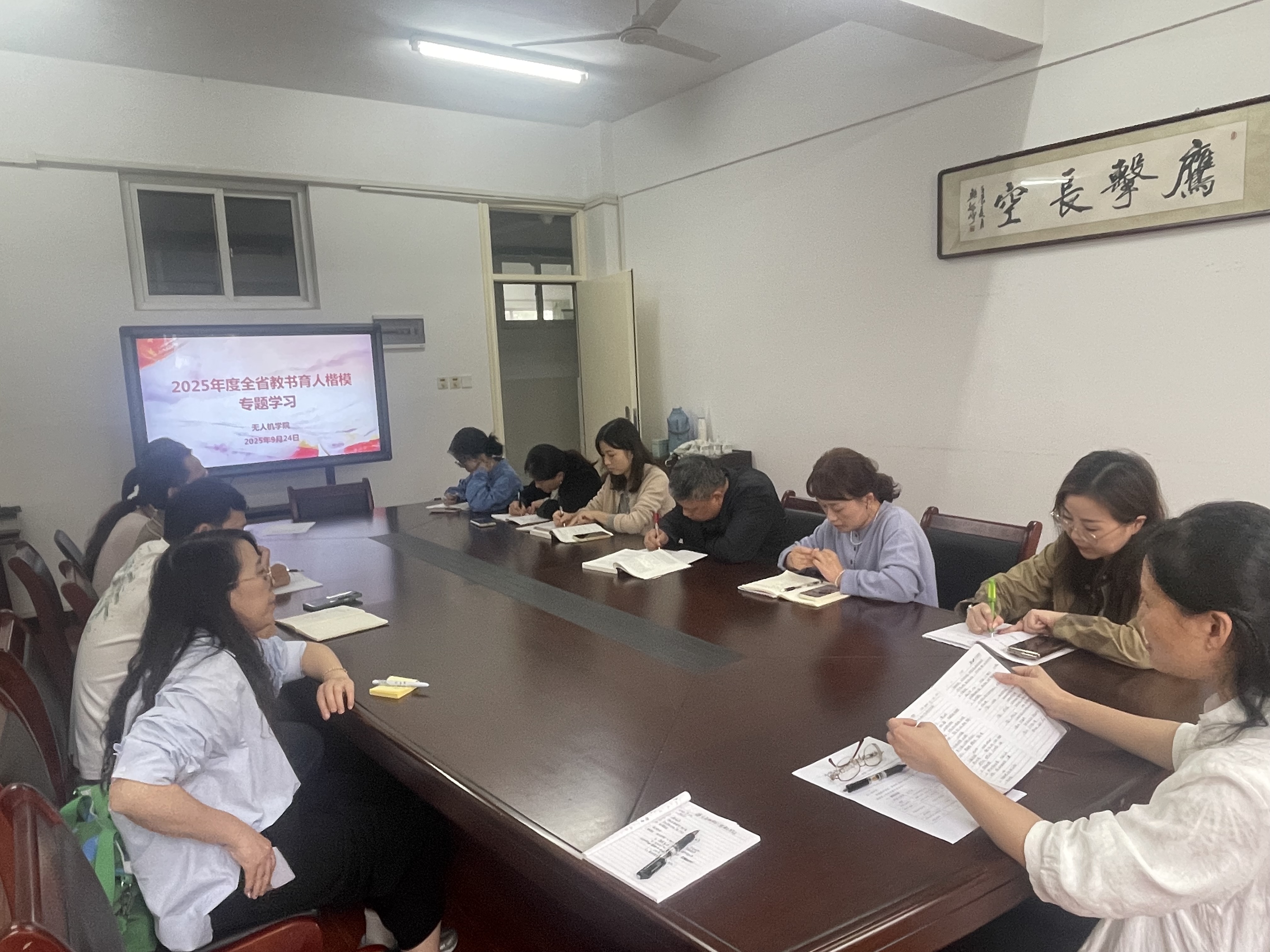 为深入贯彻党的教育方针,弘扬尊师重教的社会风尚,2025年9月24日下午,无人机学院在毕昇楼209会议室举行全省教书育人楷模学习活动。院长李穗主持会议,学院全体教职工参加学习。