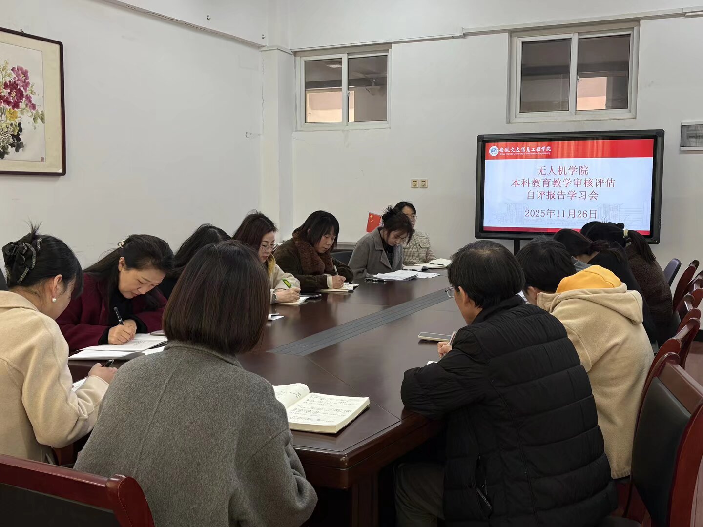 为落实本科教育教学审核评估要求,凝聚教职工迎评共识,11 月 26 日下午 2 点,无人机学院在毕昇楼209会议室组织全体教职工召开本科教育教学审核评估自评报告专题学习会,学院领导班子、各教研室主任及全体教职工参会,会议由学工副院长院长李梦领学。