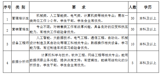 二、招聘计划本次招聘共设 4 类岗位,均要求本科及以上学历,具体如下: