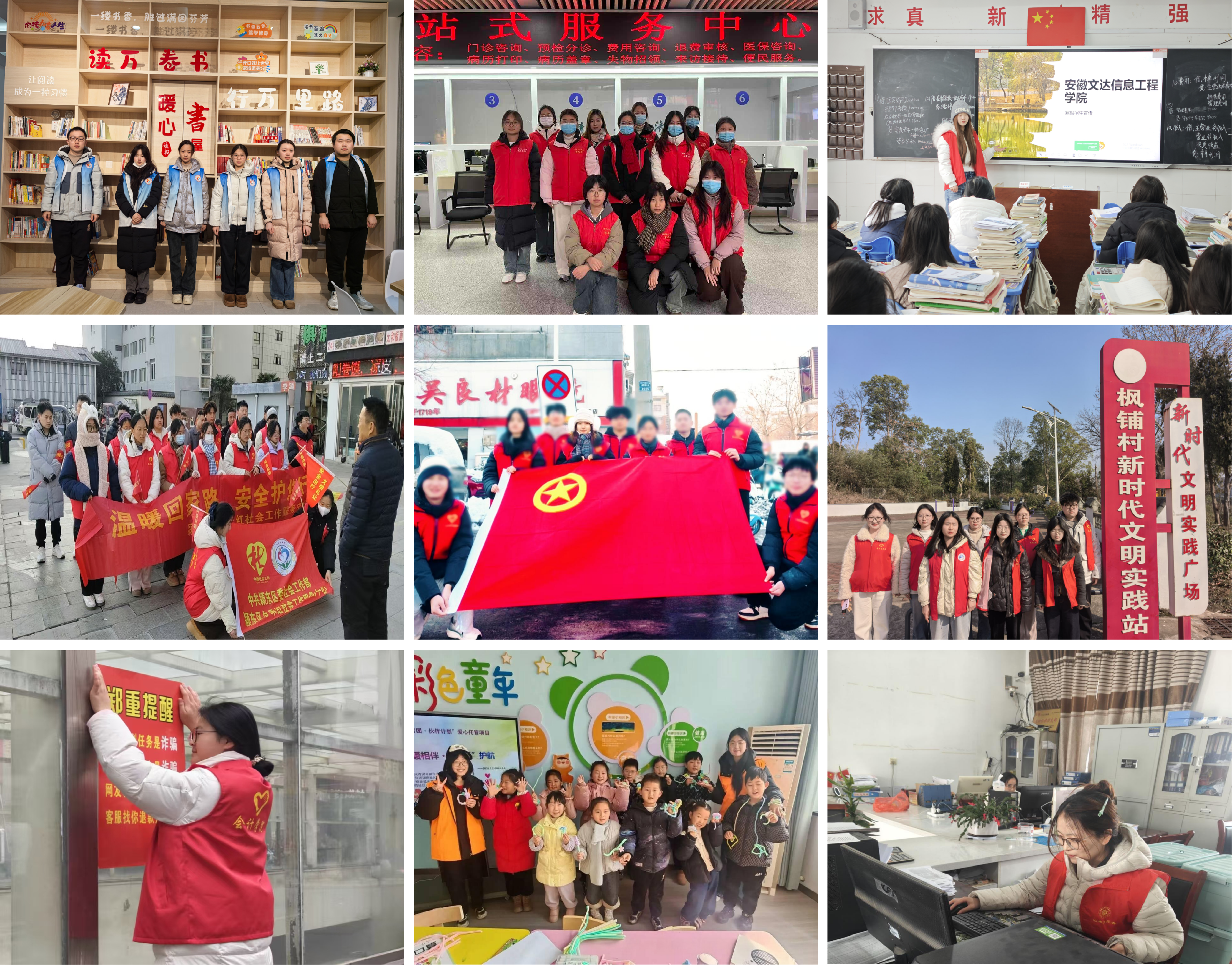 在芜湖、阜阳、六安等地,学生们积极参与图书整理、分红助老、防诈宣传、除雪保畅等社区服务,用耐心与热情温暖邻里;在利辛、淮北等地的春运保障和应急行动中,他们不畏严寒,坚守岗位,为返乡旅客和居民出行保驾护航;部分学生还在就业管理中心实习,参与档案整理、政策宣传等工作,在基层岗位上锻炼能力、增长才干。