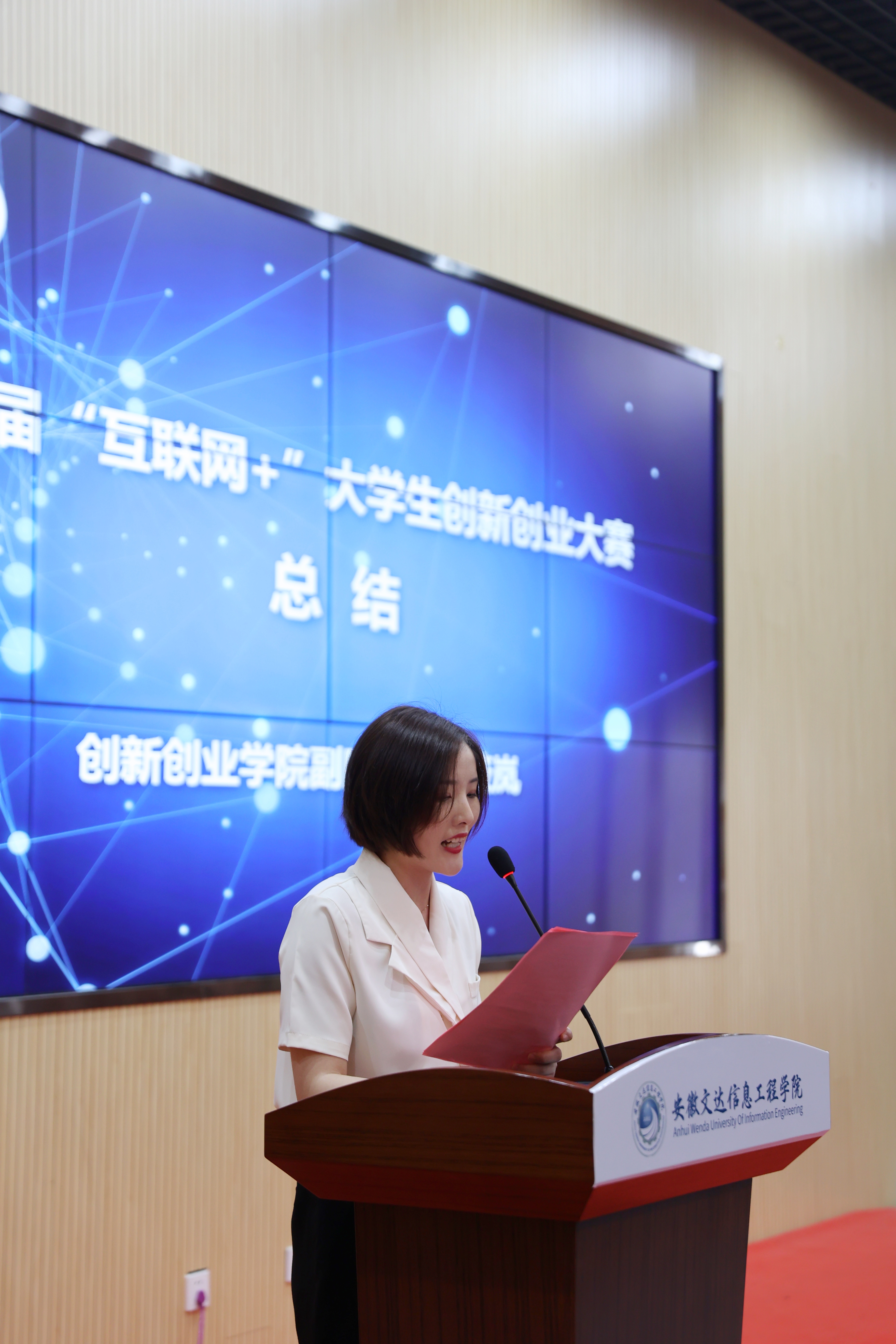 表彰会上,创新创业学院副院长、学生处负责人盖筱岚详细介绍我校第六届“互联网+”大学生创新创业大赛开展情况。在第六届安徽省“互联网+”大学生创新创业大赛总决赛中,我校1支团队晋级全国赛,该项赛事获得国家级铜奖1个;安徽省最佳带动就业单项奖1项、金奖1个、银奖3项、铜奖43项,优秀指导教师 2 名,优秀工作者1名,所获成绩创我校历史新高。