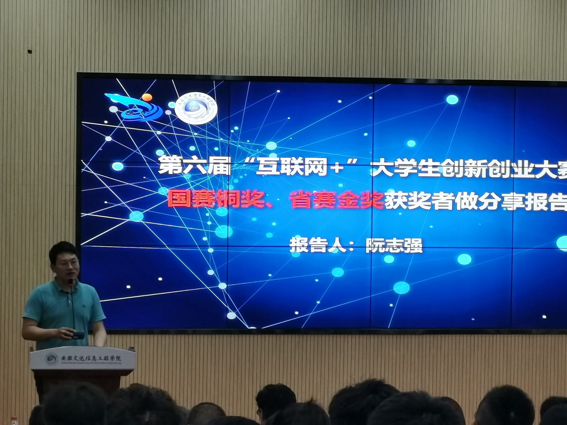 接下来由第六届中国“互联网+”大学生创新创业大赛高教主赛道全国铜奖、全省金奖获得者阮志强做分享报告。