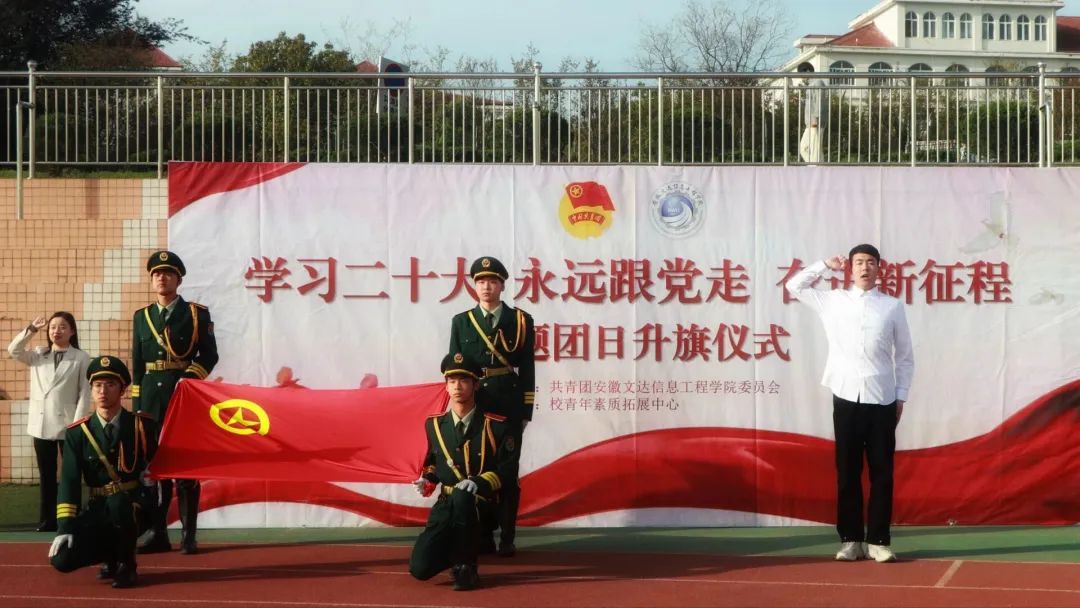 2023年4月10日上午7:30,我校团委在学校操场开展“学习二十大,永远跟党走,奋进新征程”主题团日升旗仪式,通过沉浸式体验、仪式化教育,引导团员青年统一思想、凝聚共识,切实增强团员的政治意识、组织意识和模范意识,加强新时代团的基层组织建设,将国家观念、爱国爱党的思想意识在广大文达青年学子心中牢牢扎根。