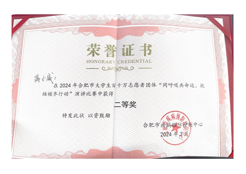 2024年3月24日是第29个“世界防治结核病日”,本次演讲比赛旨在为了更好开展“世界防治结核病日”宣传活动,深入推进合肥市百千万大学生志愿者团体结核病防控知识传播,展现合肥市大学生百千万志愿者团体风采。