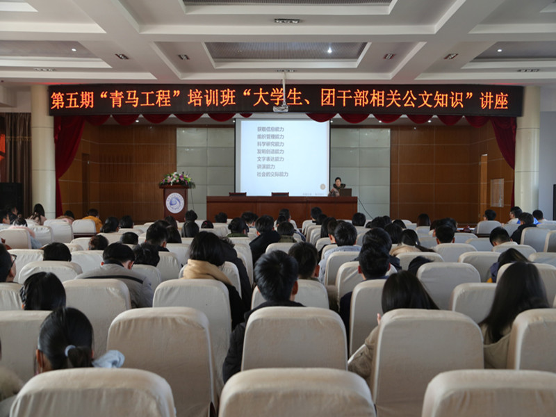 12月20日下午两点,学校第5期“青马工程”培训班迎来了最后一期课,由校办公室主任赵玉芳给本期学员讲授“大学生.团干部相关公文知识。
