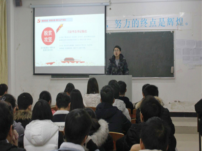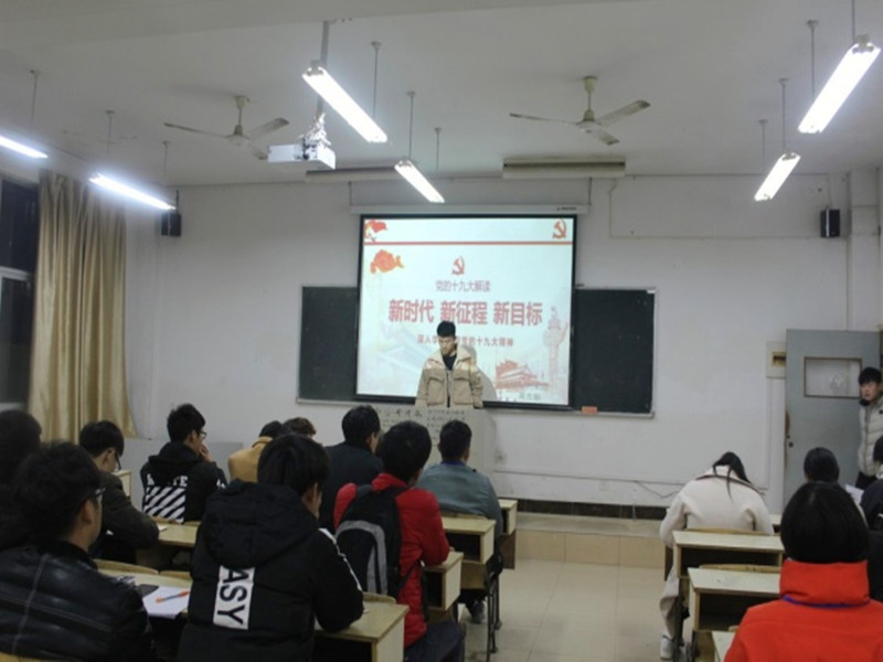 为了深入学习宣传贯彻党的十九大精神,组建了以校团委副书记沈宗平为团长的党的十九大精神学生宣讲团。在近一个月的宣讲,在校园里掀起了一场学习党的十九大的热潮。各个校级组织纷纷响应,如火如荼的开展了一场场学习党的十九大精神的宣讲会。