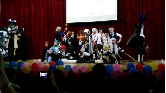 动漫社成员一到达目的地就立刻忙碌起来,进行表演前的各项准备,争取把最好的一面展现给大家。伴随着阵阵音乐,cosplay舞台剧正式拉开帷幕。舞台上同学们绘声绘色的表演,得到了观众们的阵阵掌声,更是将晚会的气氛带向了高潮。 此次晚会,让彼岸动漫社走出了文达,走向了更大的舞台,加强了校际间的交流,使动漫社的同学们的表演技巧得到了很大的提升。