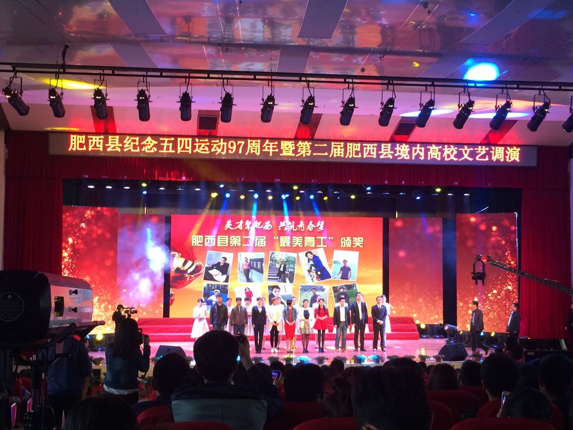 4月27日下午我校学生赴肥西县派河大剧院参加肥西县纪念五四运动97周年暨第二届肥西县境内高校文艺调演。