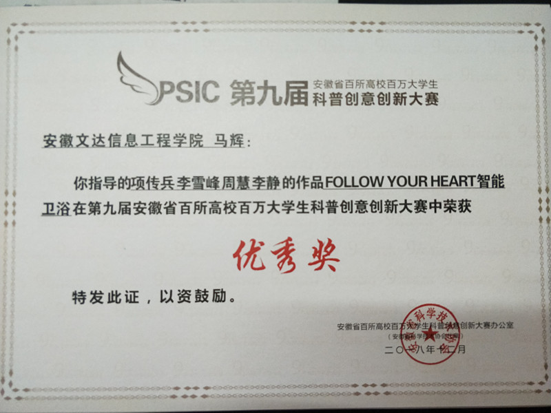 近日,第九届安徽省百所高校百万大学生科普创意创新大赛省赛结果公布,我校项传兵、钟辉的作品多功能震灾救援清障车在大赛中荣获三等奖,何磊、李雪峰、杨树康、王丹丹、吴可可的作品家庭智能检测在大赛中荣获三等奖,项传兵、李雪峰、周慧、李静的作品FOLLOW YOUR HEART智能卫浴在大赛中荣获优秀奖,郭栓、方旭的作品高空果实采摘器在大赛中荣获优秀奖,项传兵、王亚丽的作品魅影人工智能扫地垃圾桶在大赛中荣获优秀奖,马辉老师指导的项传兵、李雪峰、周慧、李静同学的作品在大赛中获得优秀奖,同时马辉老师还指导了项传兵王亚丽同学的作品并荣获了优秀奖,储红娇老师指导的郭栓、方旭在本次大赛中荣获优秀奖。