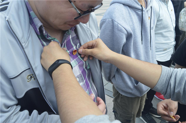 随后,姚家皓给新入团学生佩戴团徽并致以关怀和期望。