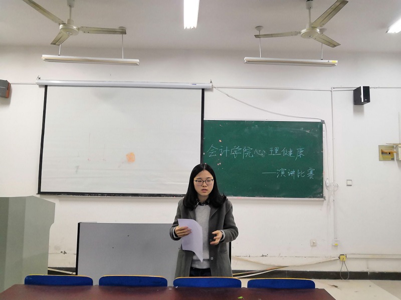 3月29日晚,会计学院团总支学生会在敬梓楼408教室举行了以“心理健康”为主题的演讲比赛。团总支许丹丹老师及学生会主要干部出席本次赛并担任评委,来自17、18级的十位选手及部分学生代表参加了比赛。
