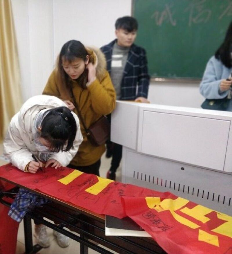 她提到诚信考试活动的开展,在推动大学生深化诚信观念、增强诚信意识、培养诚信品质有着深远的意义,希望同学们牢记“拒绝作弊,诚信考试”的倡议,严格遵守考试制度,拒绝作弊行为,并呼吁同学们以良好的心态,积极的态度面对期末考试。从自身做起,严格要求,用实际行动营造了良好的学风、考风,塑造了新时代大学生形象,努力创建纯洁公正的新媒体艺术学院良好作风。同学们纷纷表示作为当代大学生应自觉遵守考试纪律,维护考试公正,以诚信考试为荣,以违纪作弊为耻,在各类考试中不作弊,严格履行自己的庄严承诺,做一个诚实守信的大学生,最后大家在诚信考试的条幅上签名。