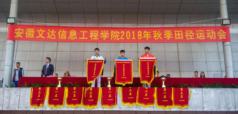 总裁判长宣布了各项比赛成绩,唐立军宣布了“体育道德风尚奖”获奖单位。本届运动会共有210名男选手和173名女选手参加了14个比赛项目的角逐。最终,计算机工程学院、会计学院和商贸学院分别获得女子团体总分前三名;商贸学院、汽车工程学院和计算机工程学院分别获得男子团体总分前三名;会计学院、新媒体艺术学院、商贸学院分别荣获本届运动会“体育道德风尚奖”。在喜悦的气氛中,校领导为获奖单位和个人颁发锦旗、奖杯和证书。