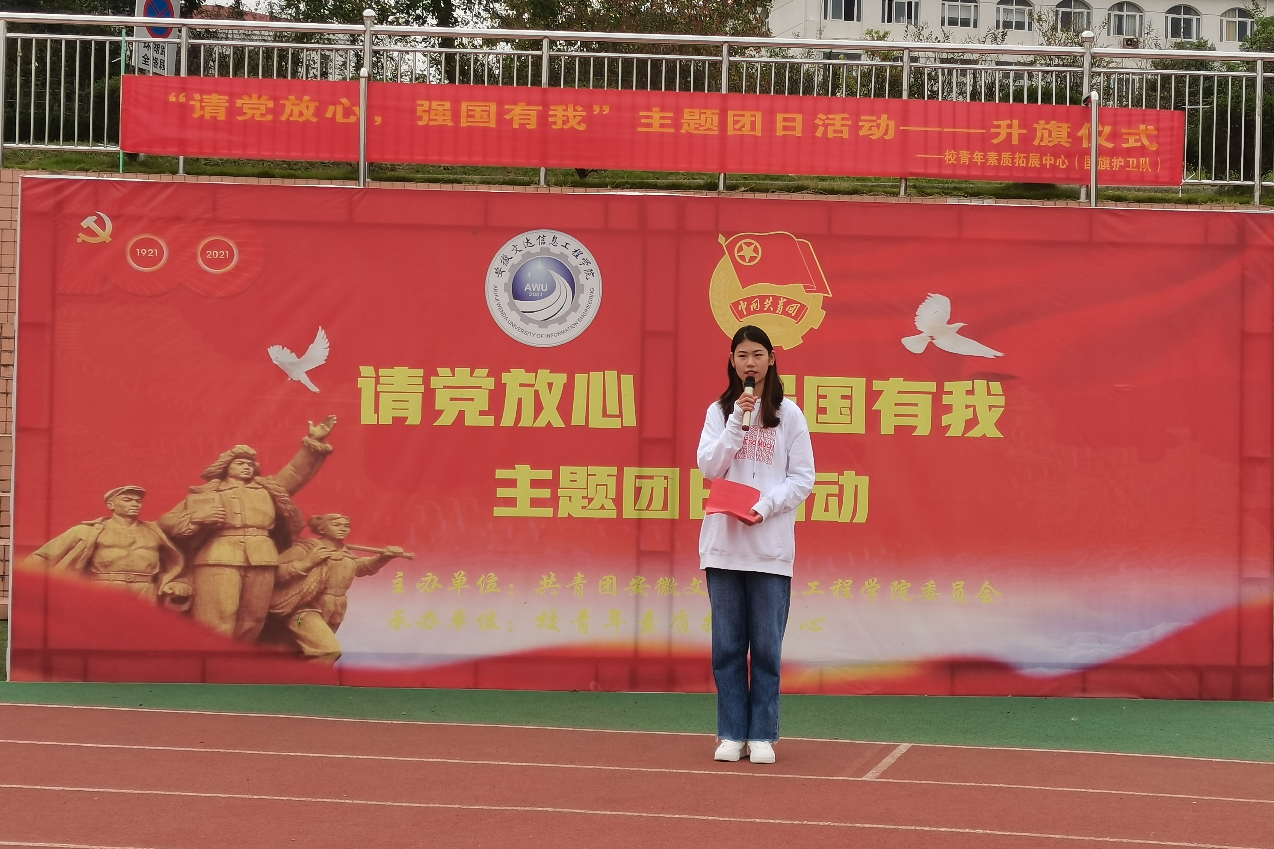 为深入学习贯彻习近平总书记在庆祝中国共产党成立在100周年大会上的重要讲话精神,教育引导全校团员青年深入领会讲话的重大意义和丰富内涵,持续推动党史学习教育走深走实,校团委于10月18日上午,在学校操场开展“请党放心,强国有我”主题团日升旗仪式,校团委副书记胡允天及近1000名学干部参加本次活动。