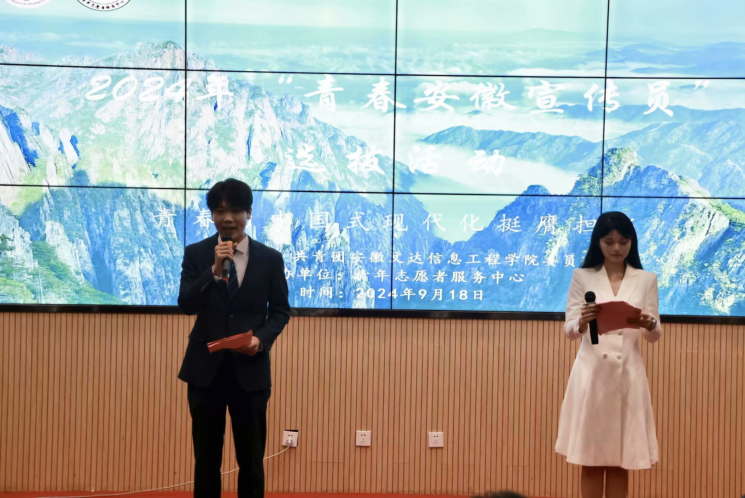 为深入贯彻落实省委、省政府关于加快建设繁荣兴盛的文化强省部署要求,激发我校大学生文化创新创造活力,讲好安徽故事,传播好安徽声音,为擦亮“美好安徽 迎客天下”品牌贡献青春力量。9月18日我校开展以“青春为中国式现代化挺膺担当”为主题的2024年“青春安徽宣传员”选拔活动。校团委老师黄志辰、校团委老师杨淑君、校团委老师李浩浩担任本次青春安徽宣传员评委。