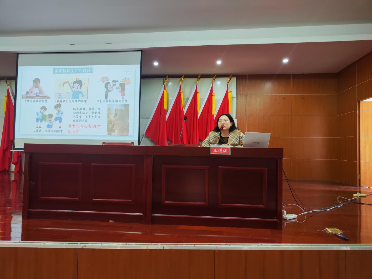 接着,王道涵老师重点介绍了大学生中常见的心理疾病,如焦虑症、抑郁症、社交恐惧症等,并强调了心理委员在早期识别和干预中的关键作用。通过具体案例,王老师讲解了如何辨识这些症状,并介绍了初步的应对措施。王老师表示,心理委员应当成为同学们情感上的倾听者和帮助者,做到在学生心理问题初现时给予及时的关注与支持。