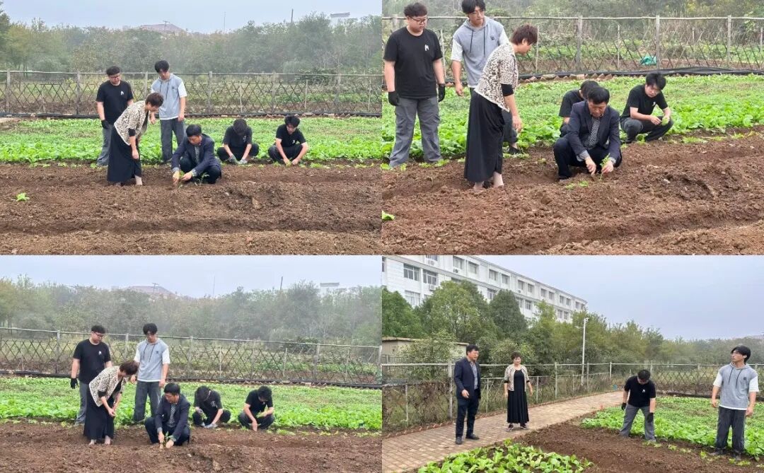 活动以园艺疗法为核心理念,通过亲手种植白菜、萝卜、青菜等作物,引导学生亲近自然、释放压力、感悟成长,在劳动中滋养心灵,收获内心的宁静与力量。在张群老师、李修习老师带领下,同学们热情投入到蔬菜的移植与栽种工作中。大家分工协作,有的小心翼翼地取出菜苗,有的细致地挖坑培土,有的负责浇灌定根水。现场气氛热烈而有序,欢声笑语与劳作的身影交织成一幅动人的画卷。