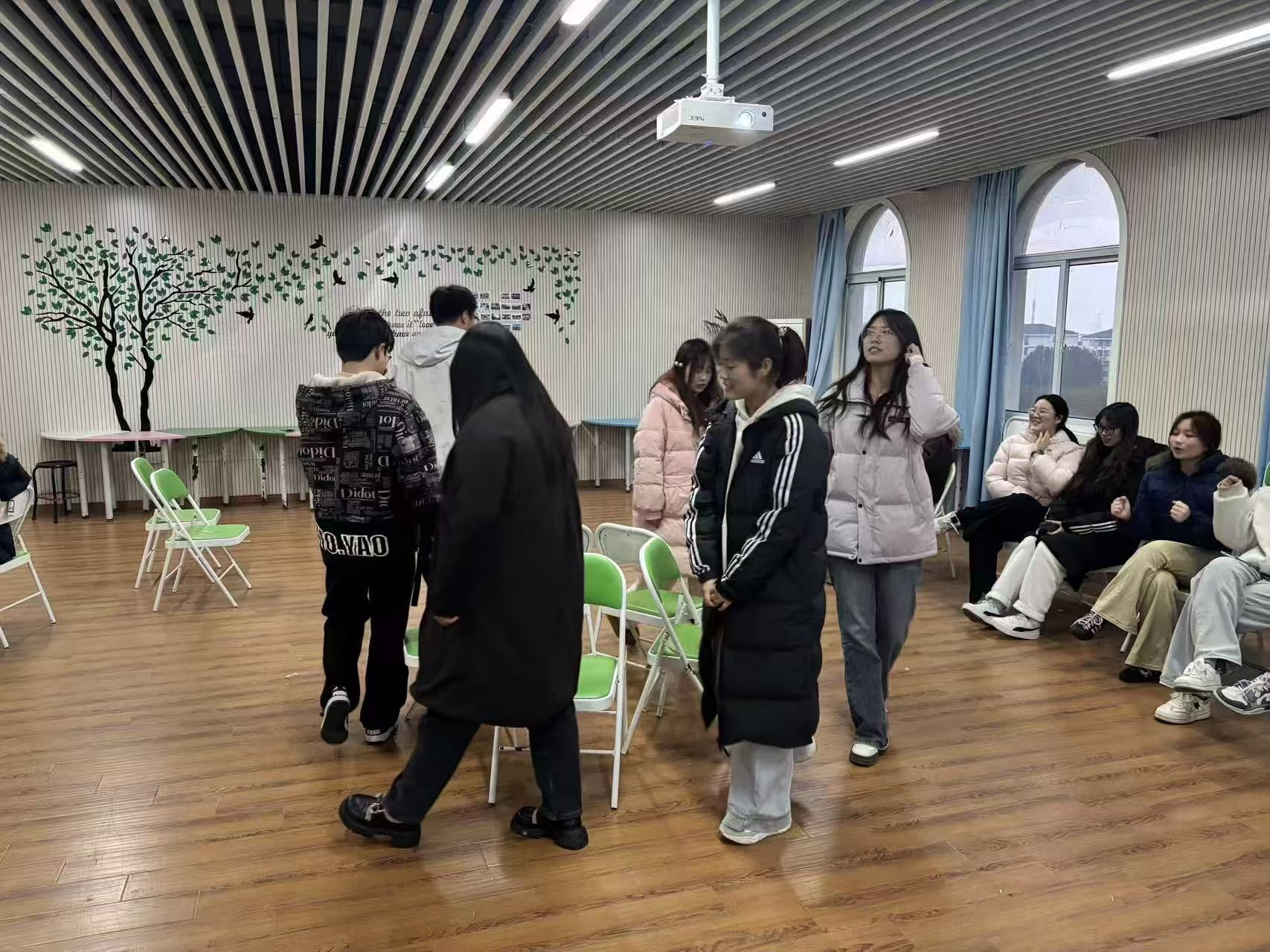 为丰富校园文化生活,促进学生心理健康与同伴支持,2025年12月23日下午,大学生心理健康教育与咨询中心于文鼎楼五楼成功举办“快乐不打烊,反应不停歇”为主题心理团体辅导活动。本次活动由朋辈咨询员李潇濠、王露菲共同主持,通过一系列轻松有趣的互动游戏,帮助同学们在学期末放松身心、增进交流,营造了温暖而活跃的集体氛围。
