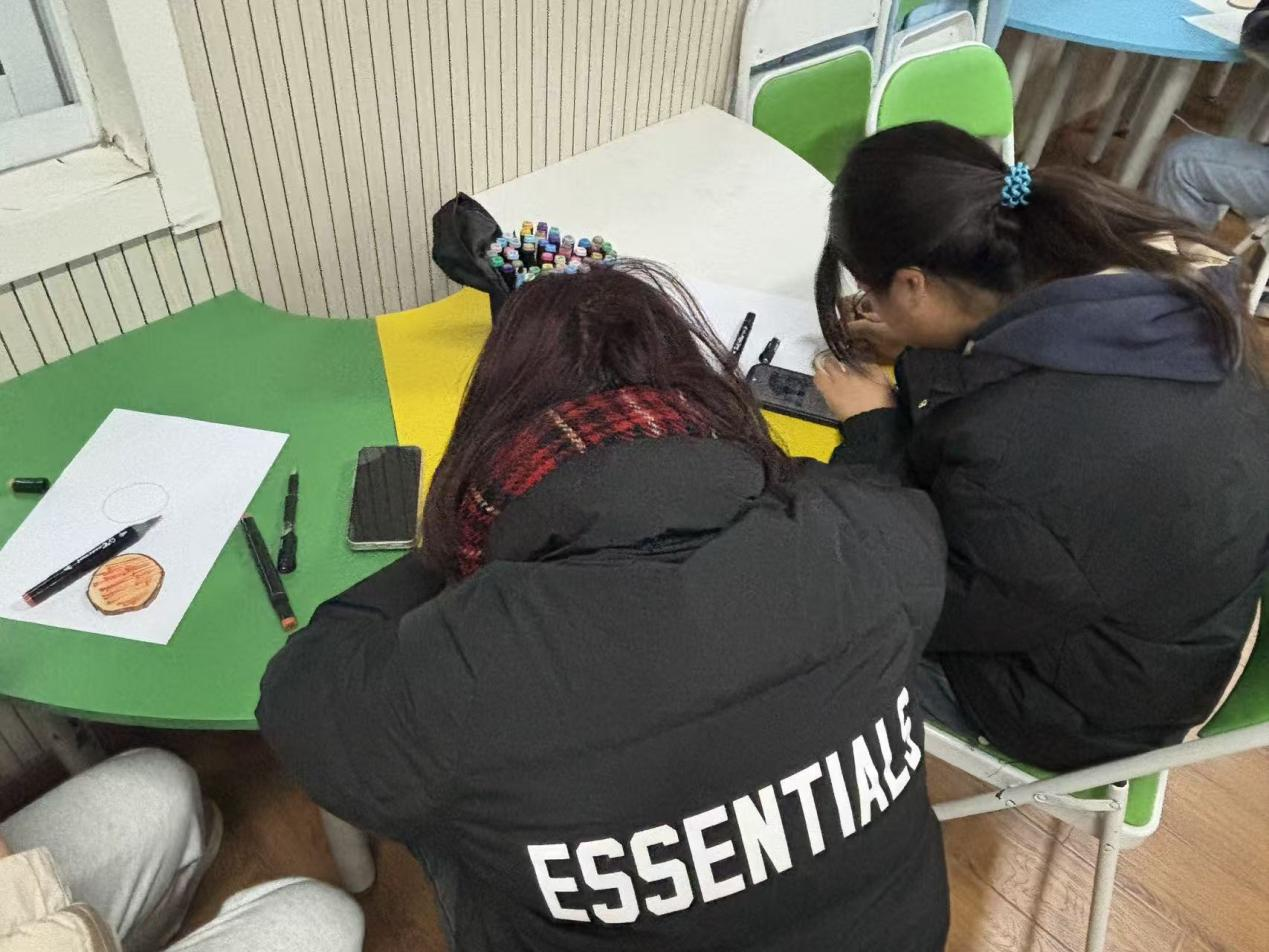 随后进入安静而富有创造性的“拾木绘梦”艺术共创环节。每人领取一块素色木片,用画笔绘制代表自己或表达当下心情的图案——可以是抽象的色彩、具象的符号,或任何内心想表达的内容。这一过程不仅激发了个体的创造力,也成为真诚表达自我的窗口。完成绘制后,所有木片被共同拼贴成一幅大型的蝴蝶图案。这场通过个人绘制、集体拼贴的艺术协作,象征着个体与集体的美好融合,让每一位成员亲身感受到美的共创过程。