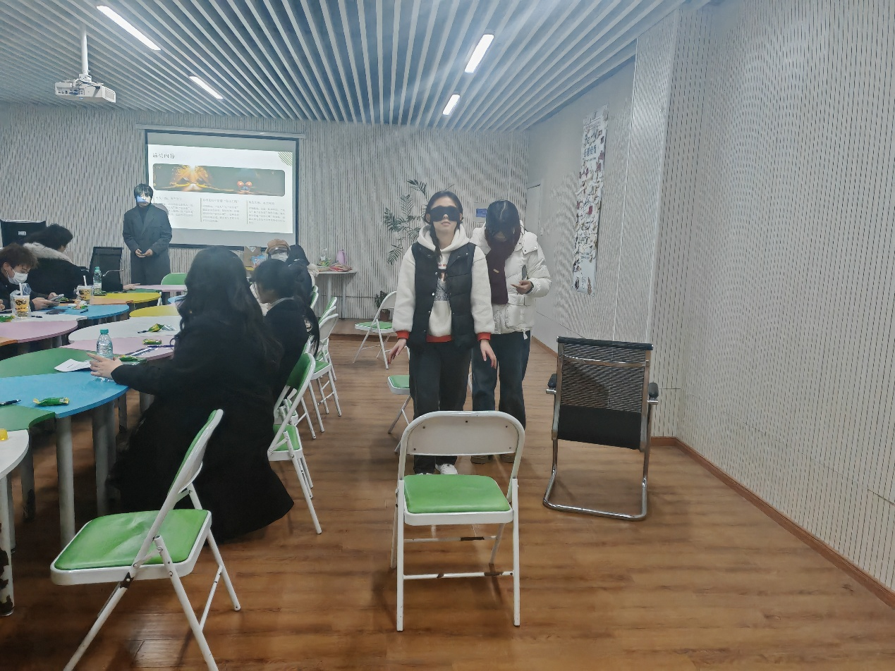 随后进入“信任的挑战”环节,同学们通过“盲人”和“引导者”的角色扮演。不仅驱散了陌生社交的隔阂,更学会了在人际互动中放下防备、真诚相待。此次环节旨在让同学们明白信任的建立虽需勇气,却能带来最珍贵的联结与温暖,为后续的沟通协作筑牢了心灵根基。