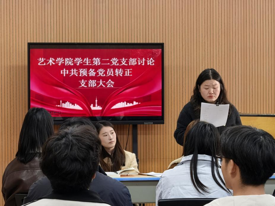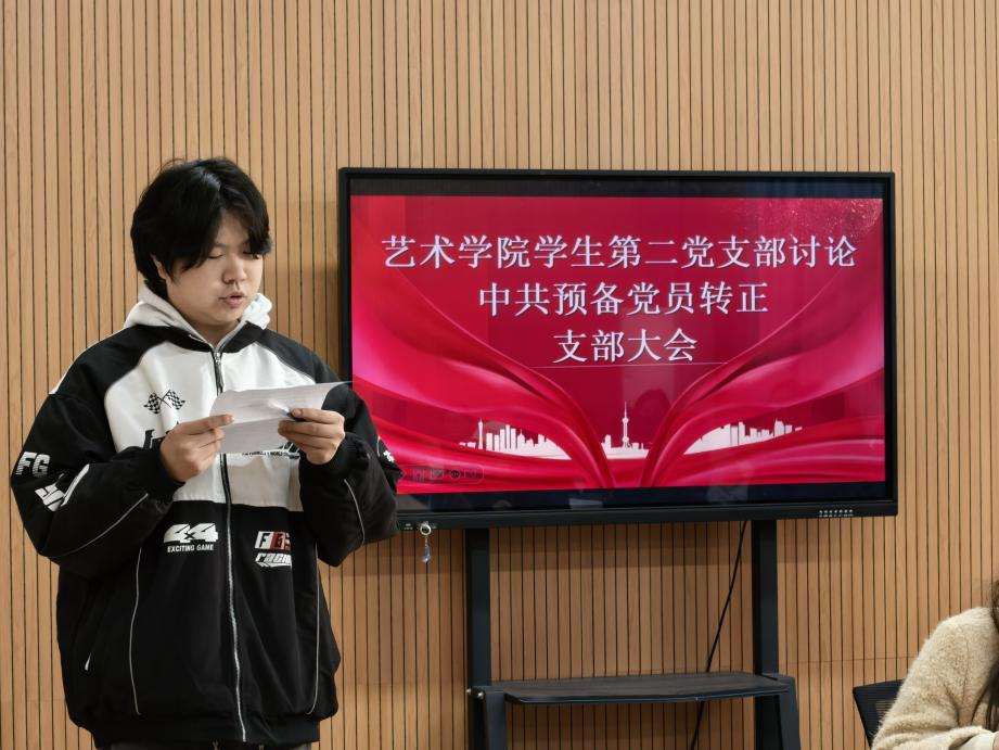陈苏皖老师作为张浩洋的入党介绍人,向大会汇报张浩洋同志在预备期间的培养考察情况:“张浩洋同志能严格自律,积极参加活动,组织纪律性突出。总体来说,该同志在预备期内表现良好,同意其按期转正。”