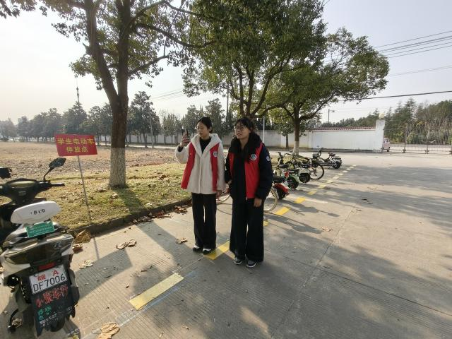 我院学生第一、第二党支部开展“规范电动车停放,党员先锋在行动”党日活动