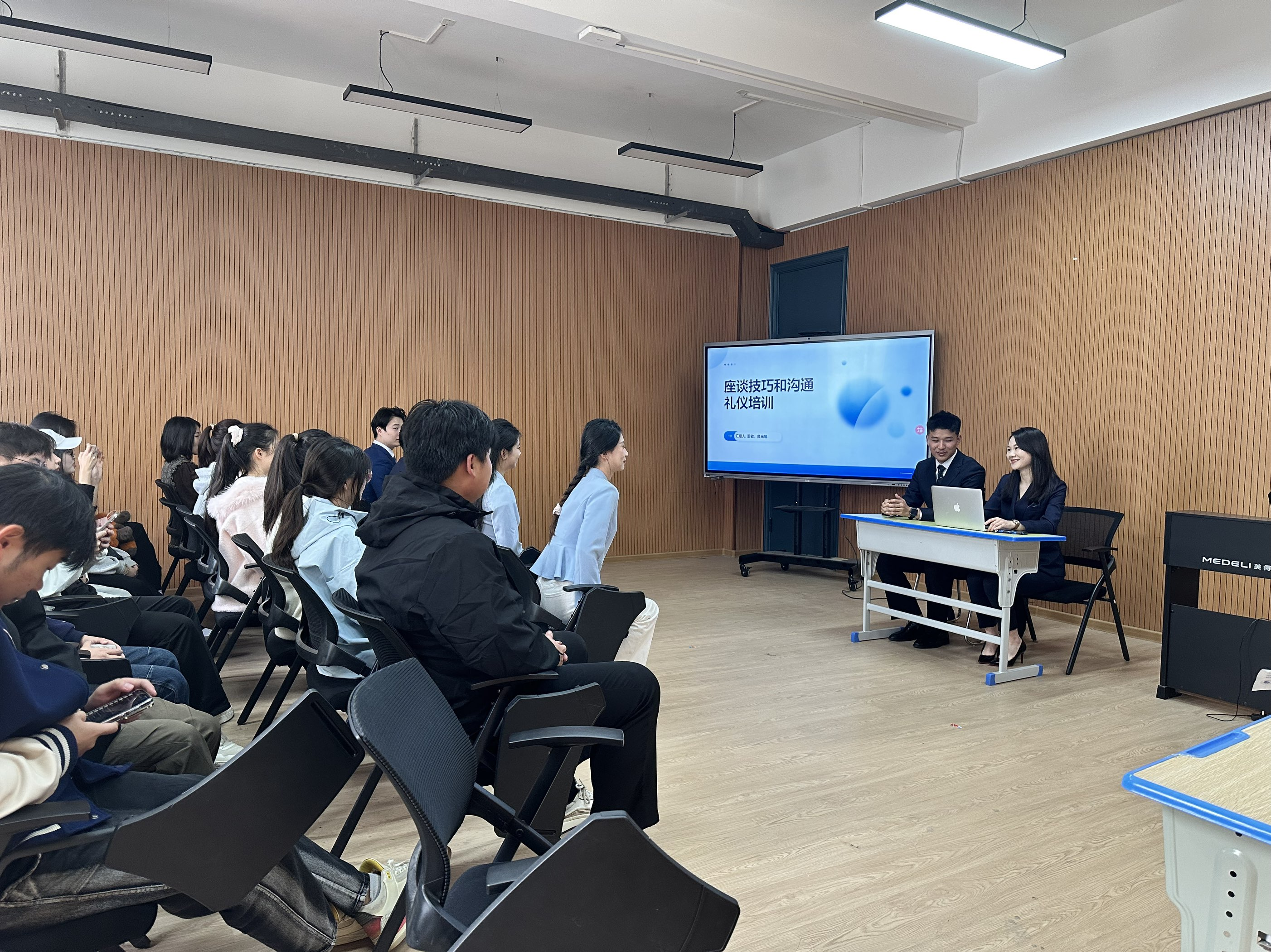 学院着力强化学生骨干队伍的示范引领作用,将文明礼仪教育融入各类学生培养体系。学院面向入党积极分子开展专题培训,将文明修养作为党性锻炼的重要内容,引导其不仅在思想上入党,更在言行上体现先进性;面向入团积极分子组织学习交流,强调团员的模范带头作用,从日常礼仪规范做起,提升综合素质;针对学生会干部则开展专项能力培训,将礼仪规范与服务意识、沟通技巧相结合,提升其开展工作、服务同学的实际能力。通过多层次、有针对性的培训,学院构建起以点带面的文明礼仪教育网络,让学生骨干首先成为文明礼仪的践行者与传播者,进而带动更广大同学共同营造文明有序、积极向上的校园文化氛围。