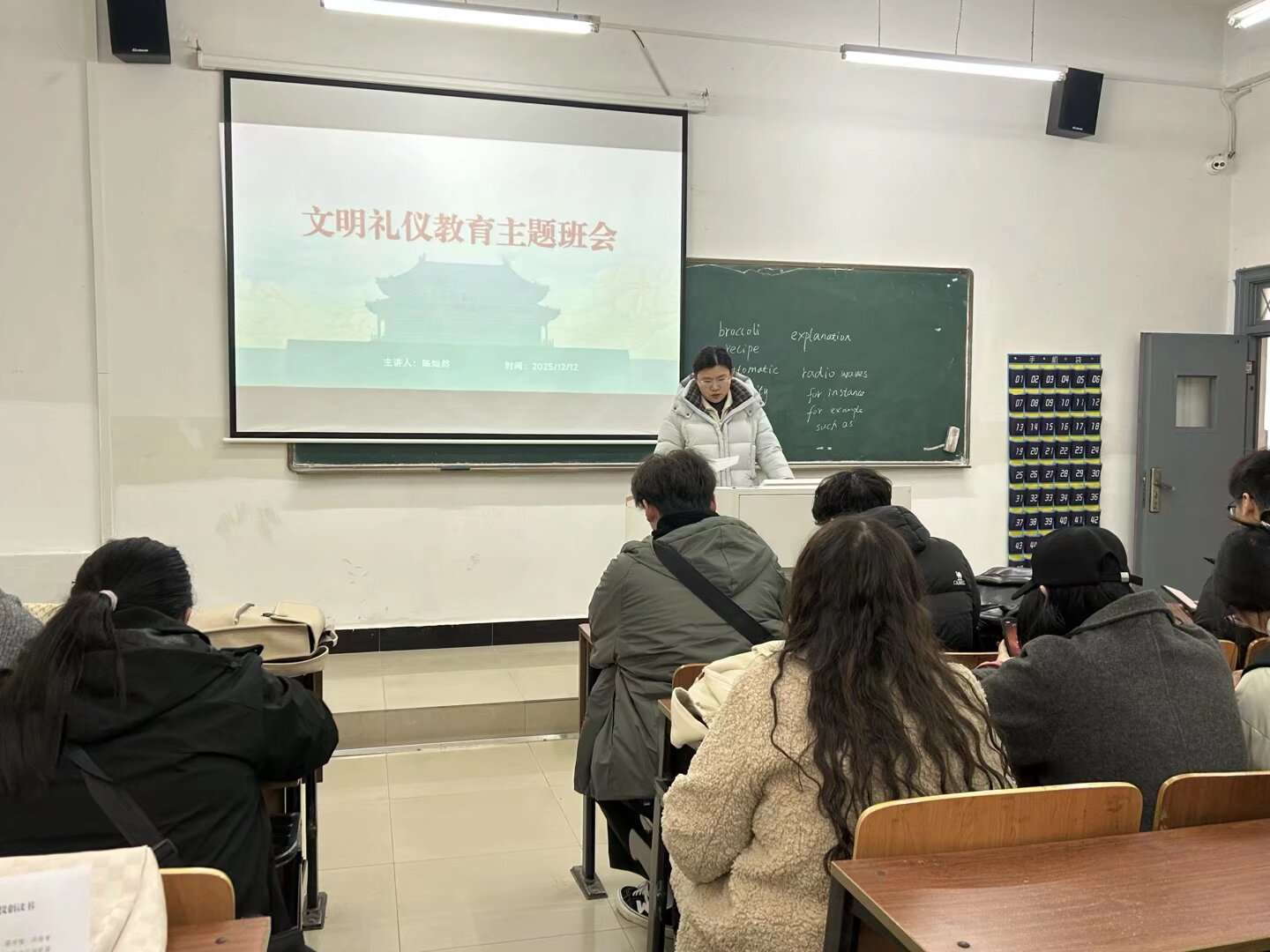 为了让文明礼仪教育更加深入人心,学院组织辅导员以班级为单位开展了文明礼仪主题班会。在班会上,组织学生围绕“文明礼仪在身边”这一主题,展开了热烈的讨论和交流。同学们分享了自己在日常生活中遇到的文明和不文明行为,并就如何践行文明礼仪发表了自己的看法和体会。辅导员们通过课件讲解、动作示范、案例分析与现场互动,帮助学生快速深化对礼仪规范的认识,夯实文明认知基础,增强自觉遵守文明礼仪规范的意识。