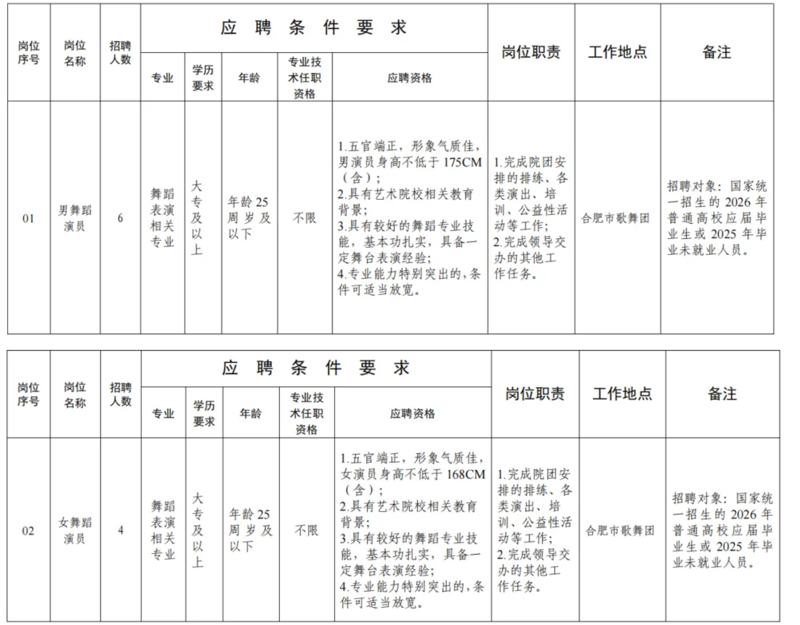 五、其他注意事项合肥演艺集团对本次招聘享有最终解释权。