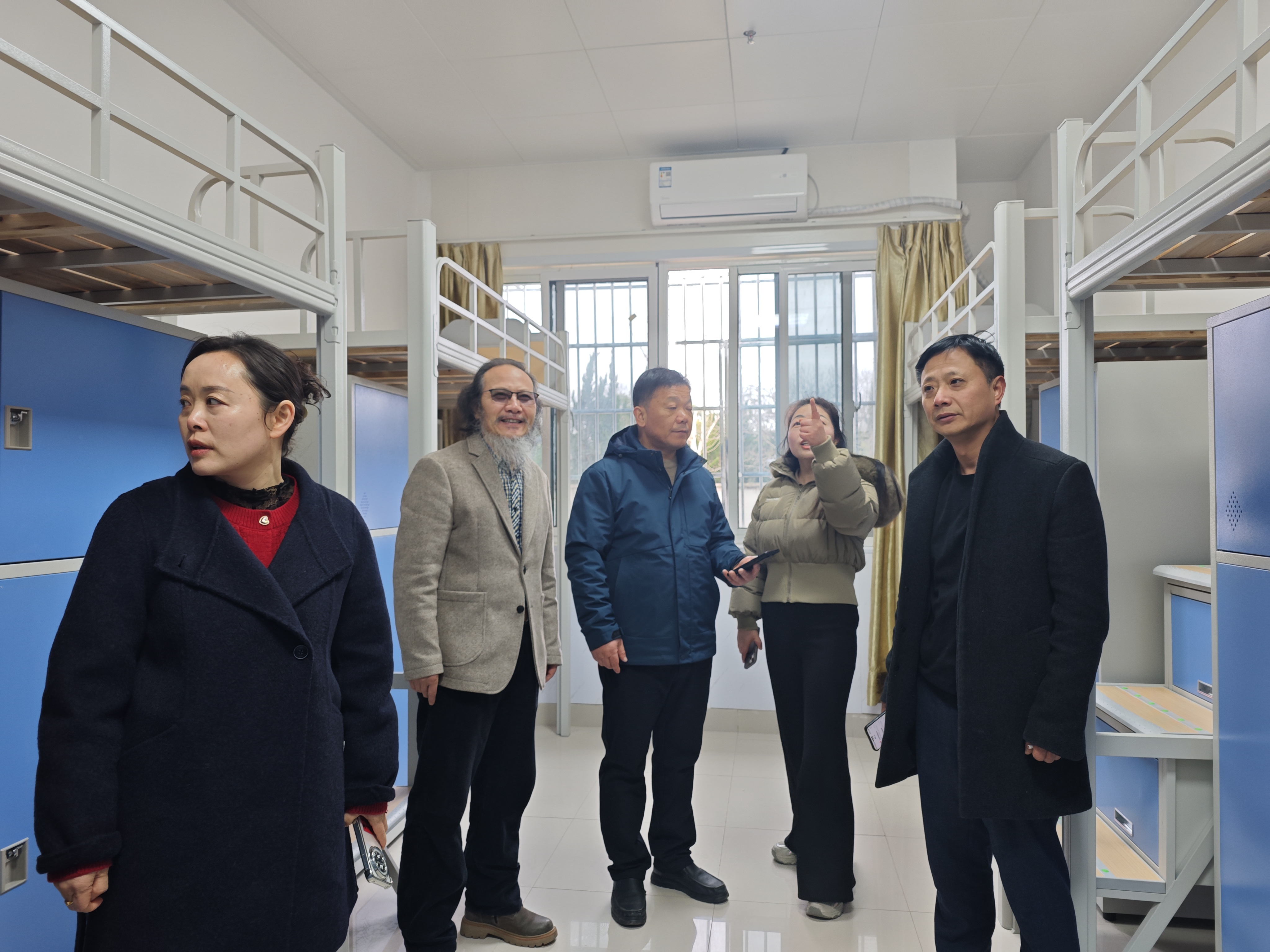 寒假期间,南门宿舍进行了系统的升级改造。领导一行首先对宿舍楼的外部环境进行了巡视,仔细查看了宿舍周围相关情况,包括外墙粉刷、路面修复及绿化更新等情况。随后,领导们走进每一间宿舍,对此次改造的核心项目——包括宿舍床柜更换、电路优化、卫生安全等进行了逐一查验,重点查看了宿舍区的消防通道、灭火器配置以及监控设备的运行情况。检查期间黄腊梅处长仔细查看床铺的稳固性,方福颖院长也向后勤及施工负责人询问工程细节、材料环保标准以及最后的保洁进度。杨静书记和学院学工队伍强调,学生宿舍是学生在校期间的重要生活场所,改造工程的最终目的是提升学生的幸福感和获得感。虽然学生还未返校,但我们的工作标准不能降低,要站在学生的角度去审视每一个细节,用心用情做好服务保障,确保开学时呈现在同学们面前的是一个安全、舒适、温馨的“家园”。
