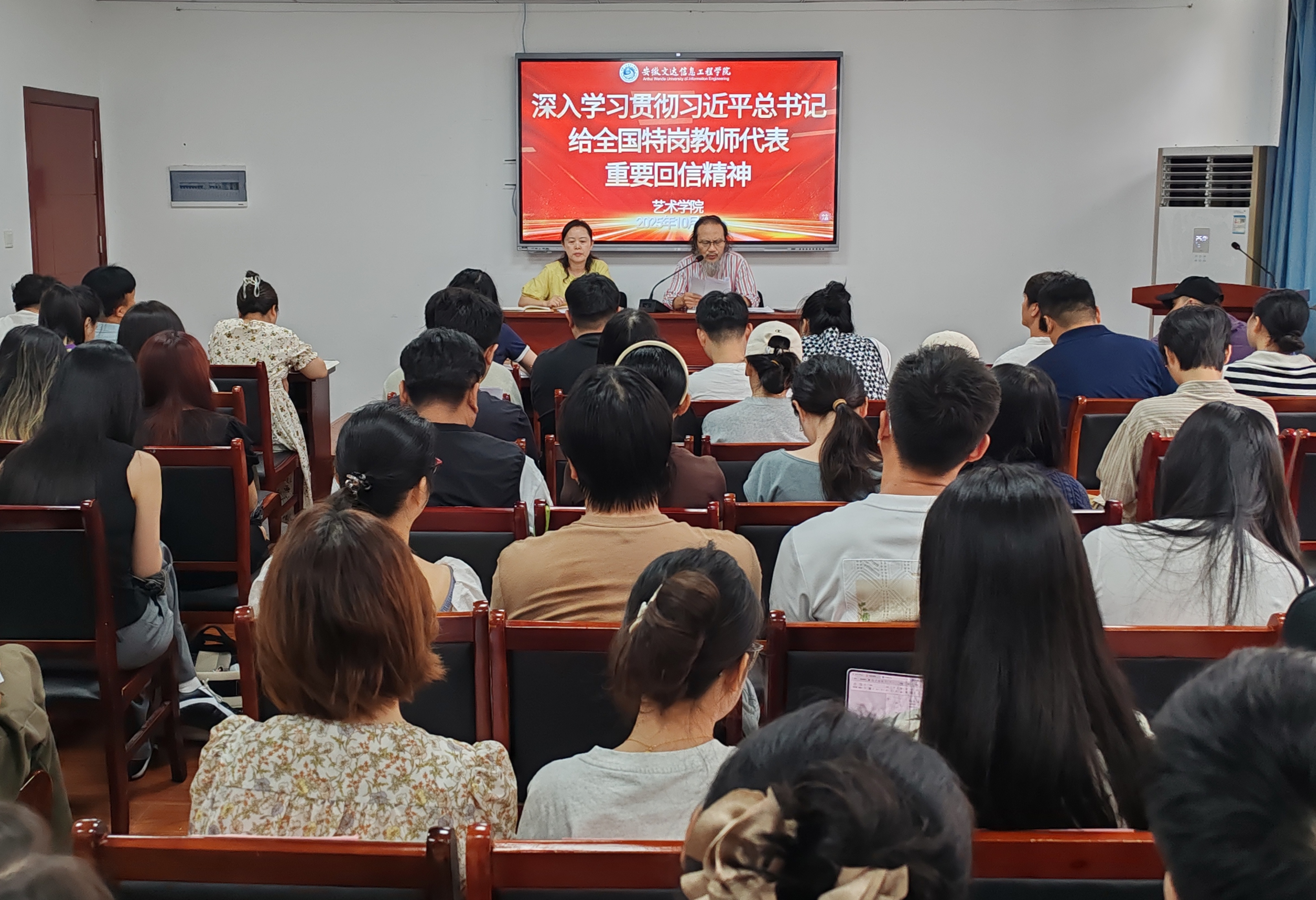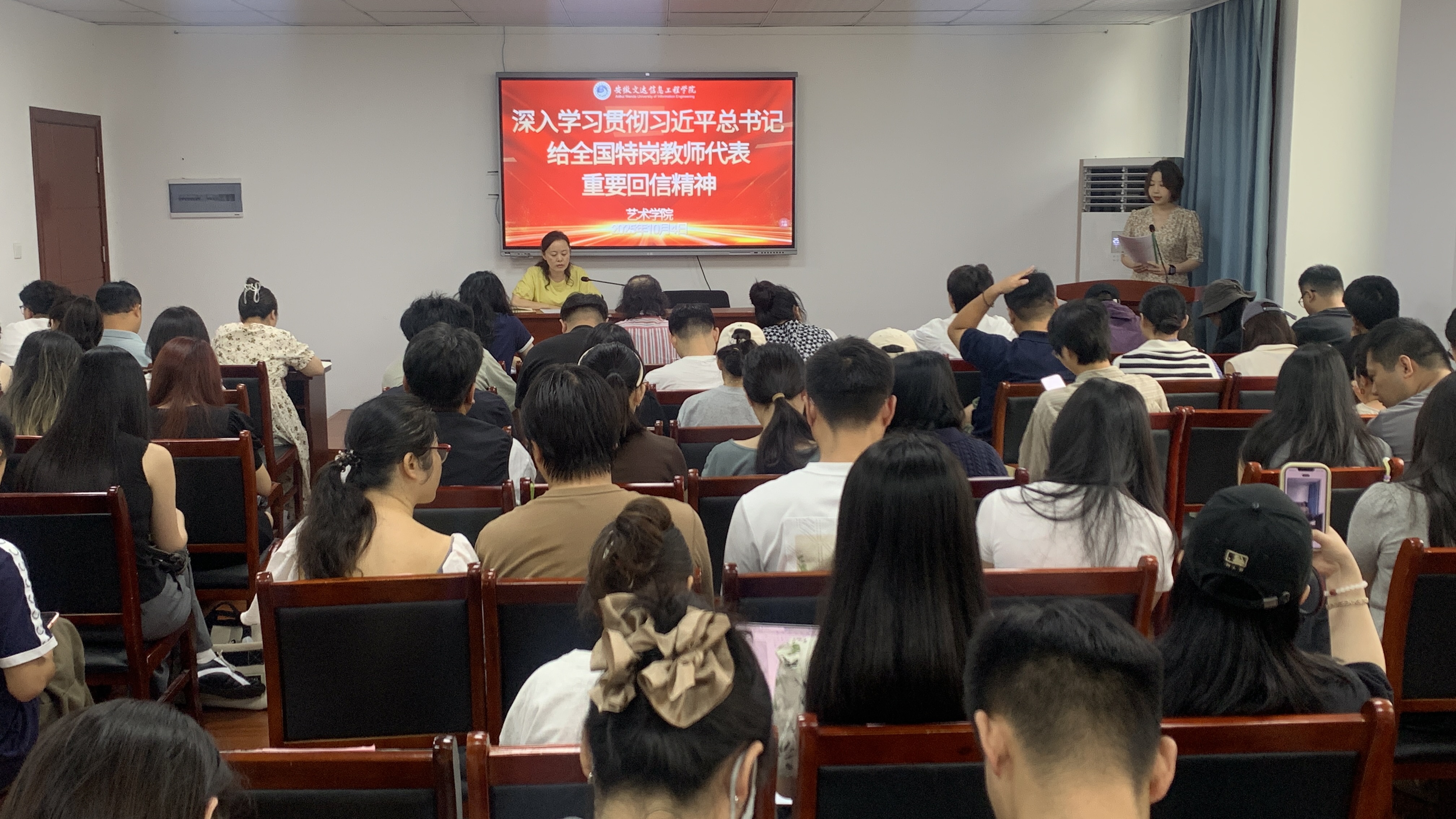 10 月 8 日,艺术学院党总支召开专题学习研讨会,旨在深入学习贯彻习近平总书记给全国特岗教师代表的重要回信精神。此次会议由学院党总支书记杨静主持,全体教职工参与。