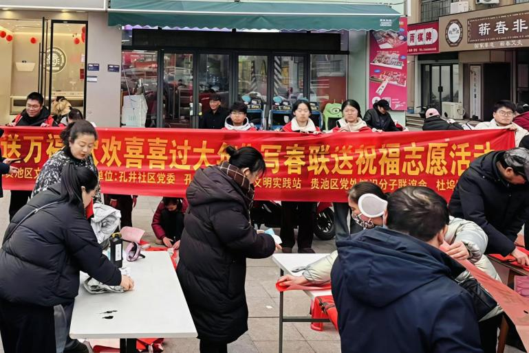 笔墨传情,温暖新春。在池州市贵池区孔井社区,动画专业的吴鑫同学化身传统文化的接力者。他协助书法老师备笔墨、铺红纸、晾春联,并将一幅幅满载祝福的春联福字送到居民手中。“在笔墨飘香中,我不仅感受到了中华优秀传统文化的魅力,更体会到了服务邻里、传递温暖的快乐与价值。”他在实践中感悟,青年的责任担当就蕴藏在这样看似平凡却充满温情的服务之中。