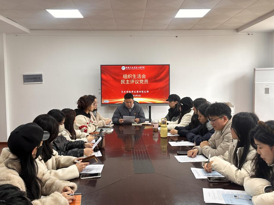 为深入学习贯彻习近平新时代中国特色社会主义思想,强化政治引领,进一步加强学生党支部建设,3月3日中午,艺术学院学生第四党支部于稼先楼会议室召开2025年度组织生活会暨民主评议党员会议。大会由学生第四党支部书记李俊松老师主持。