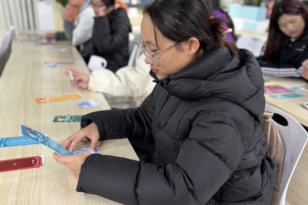 在答题区,同学们或低头沉思,或小声讨论,在谜题与答案之间不断推敲。工作人员在现场适时给予类别提示,引导大家拓宽思路。完成作答后,同学们前往兑奖区核验答案并领奖,让每一位参与者都能在活动中有所收获。活动尾声,同学们手持奖品或谜题卡片合影留念,并用便签写下自创灯谜贴于灯谜打卡墙,与他人分享创意与巧思。活动结束后,部分优秀原创灯谜将在社区公众号上进行展示与推广,进一步扩大活动影响力。