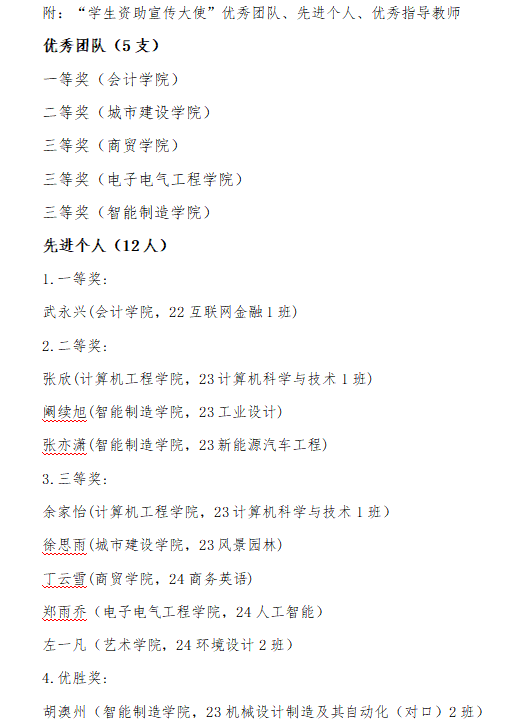 2025年安徽文达信息工程学院“学生资助宣传大使”优秀团队、先进个人和优秀指导教师评选结果公示