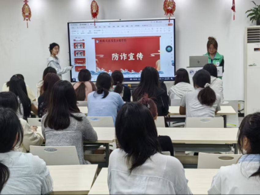 活动尾声,主持人聚焦新生入学常见安全风险,开展防诈骗宣传,提醒新生警惕陌生信息,通过学校正规渠道办理校园卡、缴纳费用,守护财产安全。 答疑环节中,工作人员耐心倾听并解答新生关于宿舍管理、食堂服务、入学焦虑、人际关系等问题,提供实用建议,搭建安心入学“帮扶桥梁”。