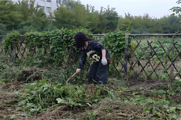 随着作物生长周期更替,覆膜已完成阶段性使命。同学们小心卷起残破的农业覆膜,逐一回收整理。“拆膜时要轻,避免伤及根系,”张同学一边操作一边提醒,“就像卸下过去的负担,才能轻装前行。”