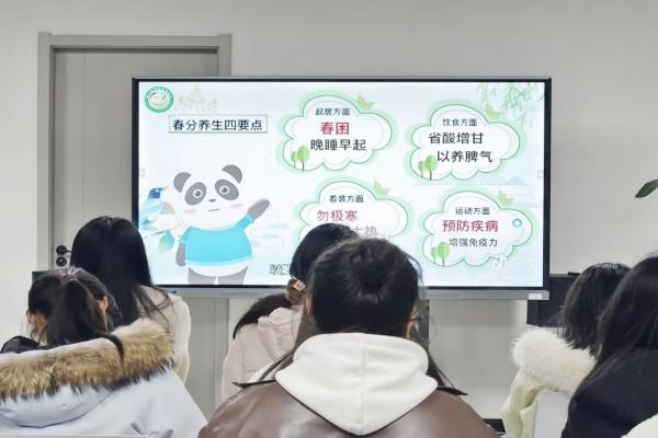 活动以主持人开场介绍拉开序幕,帮助现场同学快速了解环节安排。工作人员围绕春分养生与春季健康要点展开科普,讲解规律作息、疏肝护眼等实用知识,提醒大家少熬夜、多运动,养护春日身心。