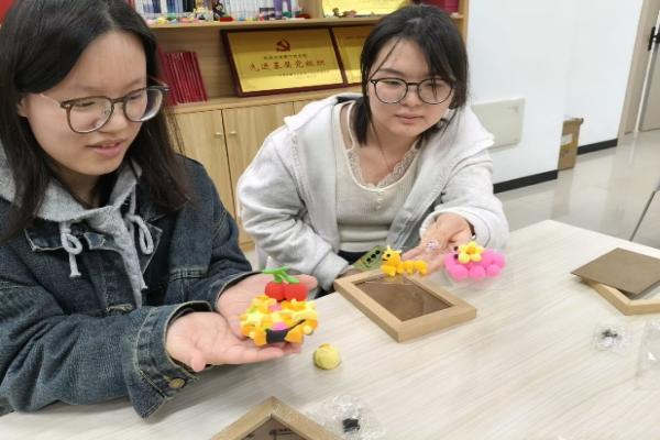 活动伊始,主持人向到场同学介绍粘土手工创作的乐趣与春日主题创意,通过展示优秀粘土作品为大家提供创作参考。随后,社区工作人员为同学们分发粘土、工具及装饰配件等材料,大家自由发挥创意,动手制作春日花卉、可爱造型等作品,在沉浸式创作中感受指尖与创意碰撞的快乐。