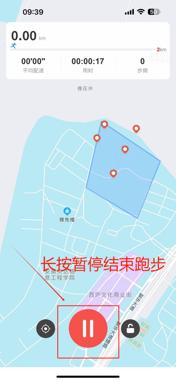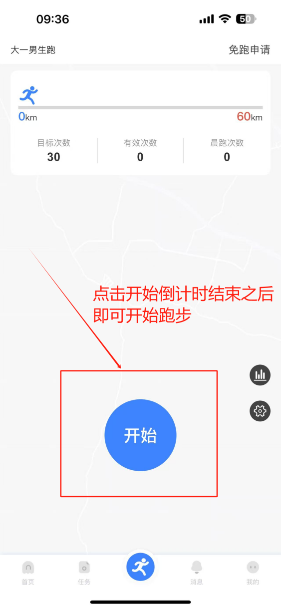 为了防止权限没有设置的请同学们不要锁住手机屏幕跑步可以点击右下角x号图标即可最小化锁屏跑步如右图以下: